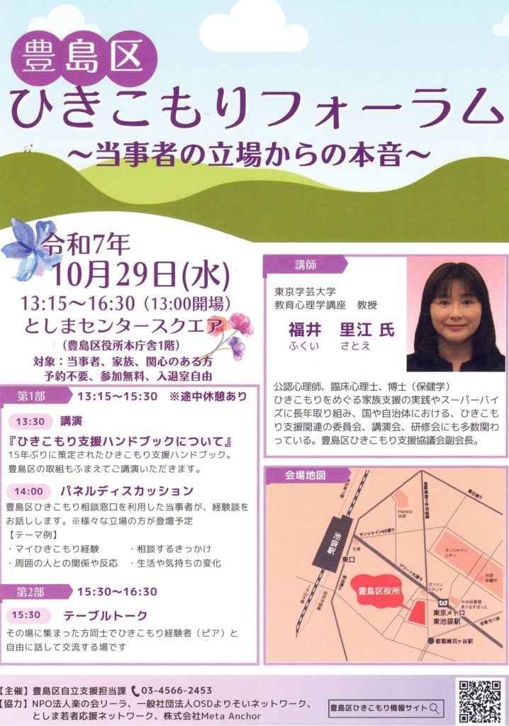 豊島区ひきこもり支援協議会副会長。
