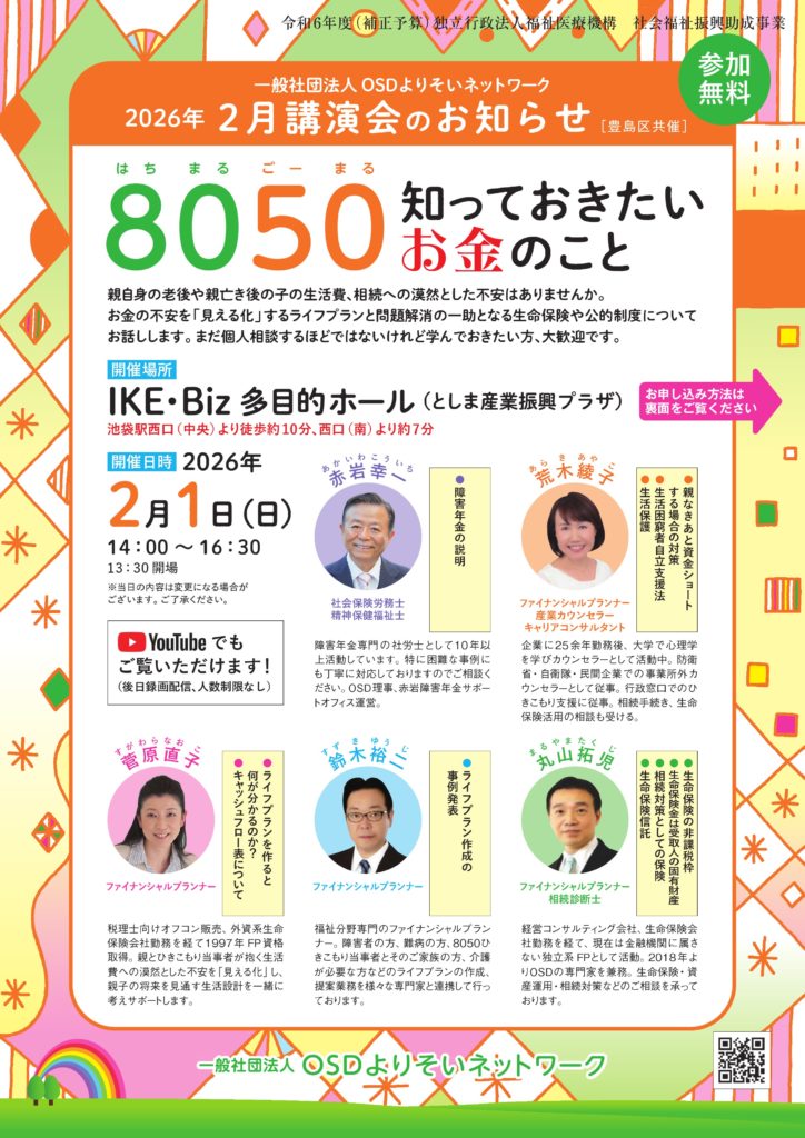 OSD理事、赤岩障害年金サポートオフィス運営。